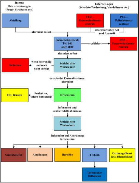 Ein klar definierter Alarm- und Entscheidungsprozess sichert schnelles und koordiniertes Handeln in internen und externen Notlagen.