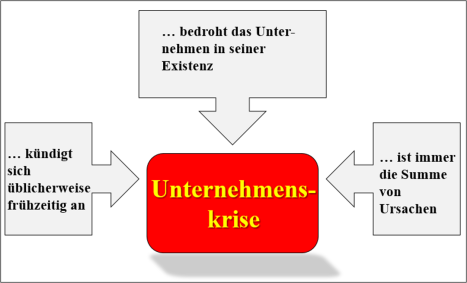 Unternehmenskrisen sind ungeplante und ungewollte Ereignisse, die über einen begrenzten Zeitraum anhalten, schwer zu beeinflussen sind und unterschiedliche Ergebnisse haben können. Sie können das Fortbestehen eines Unternehmens erheblich gefährden oder sogar verhindern. Dies tritt ein, wenn wichtige Unternehmensziele beeinträchtigt werden oder nicht erreicht werden, was zu erheblichen Bedrohungen oder sogar zur Zerstörung des Unternehmens führen kann.